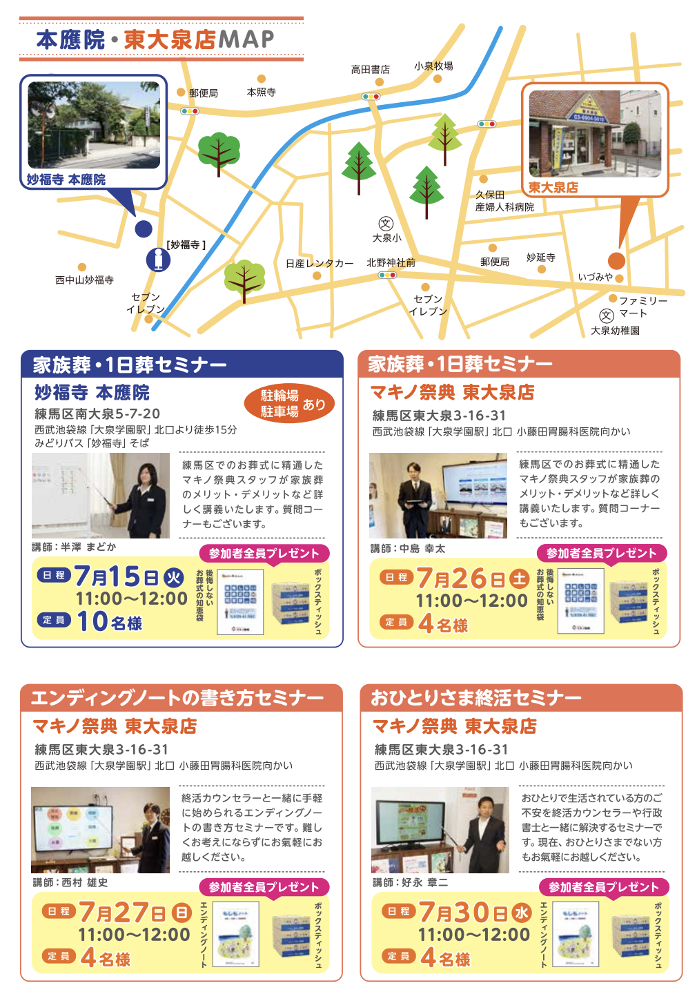 マキノ祭典は、皆様のお役に立つことを考え、各サロンで、さまざまなセミナーを開催しています。