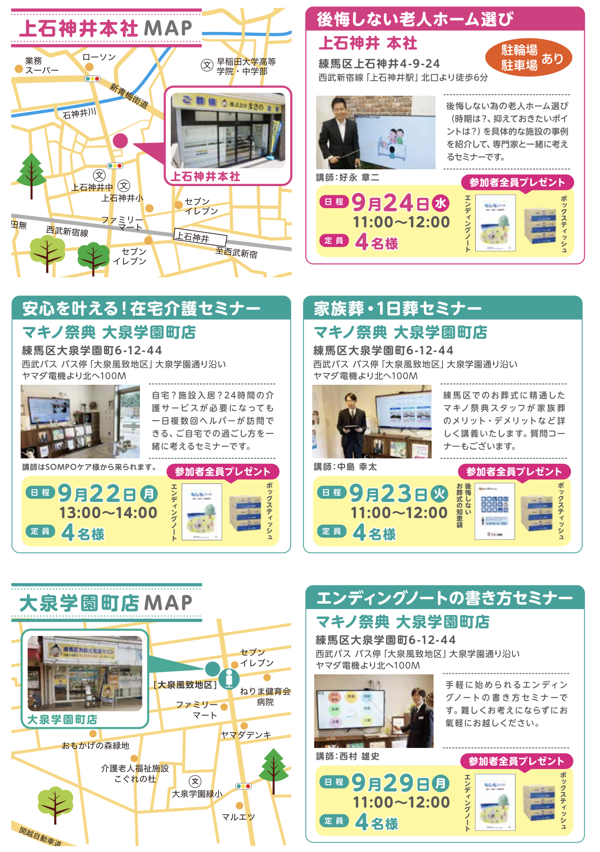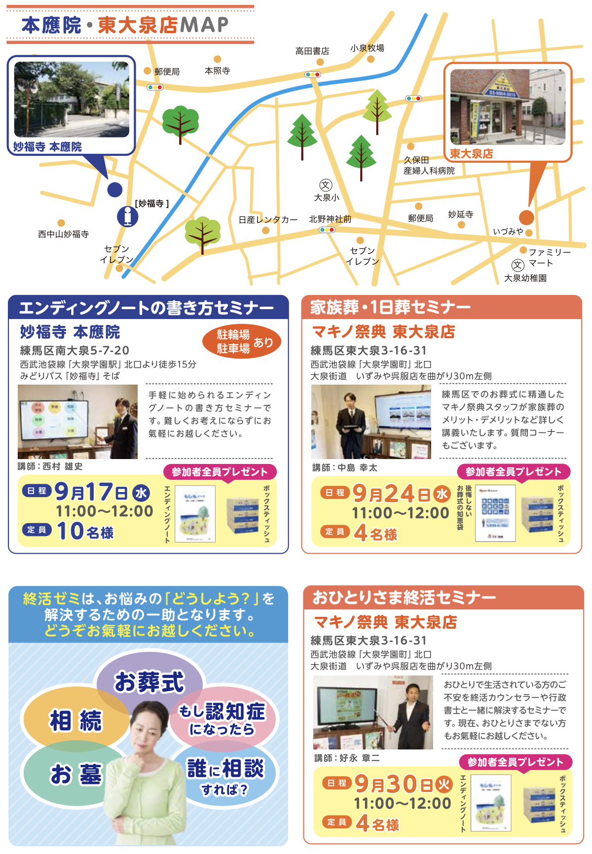 9月度 セミナー開催のお知らせ | 練馬区の家族葬・区民葬ならマキノ祭典(株式会社まきの)