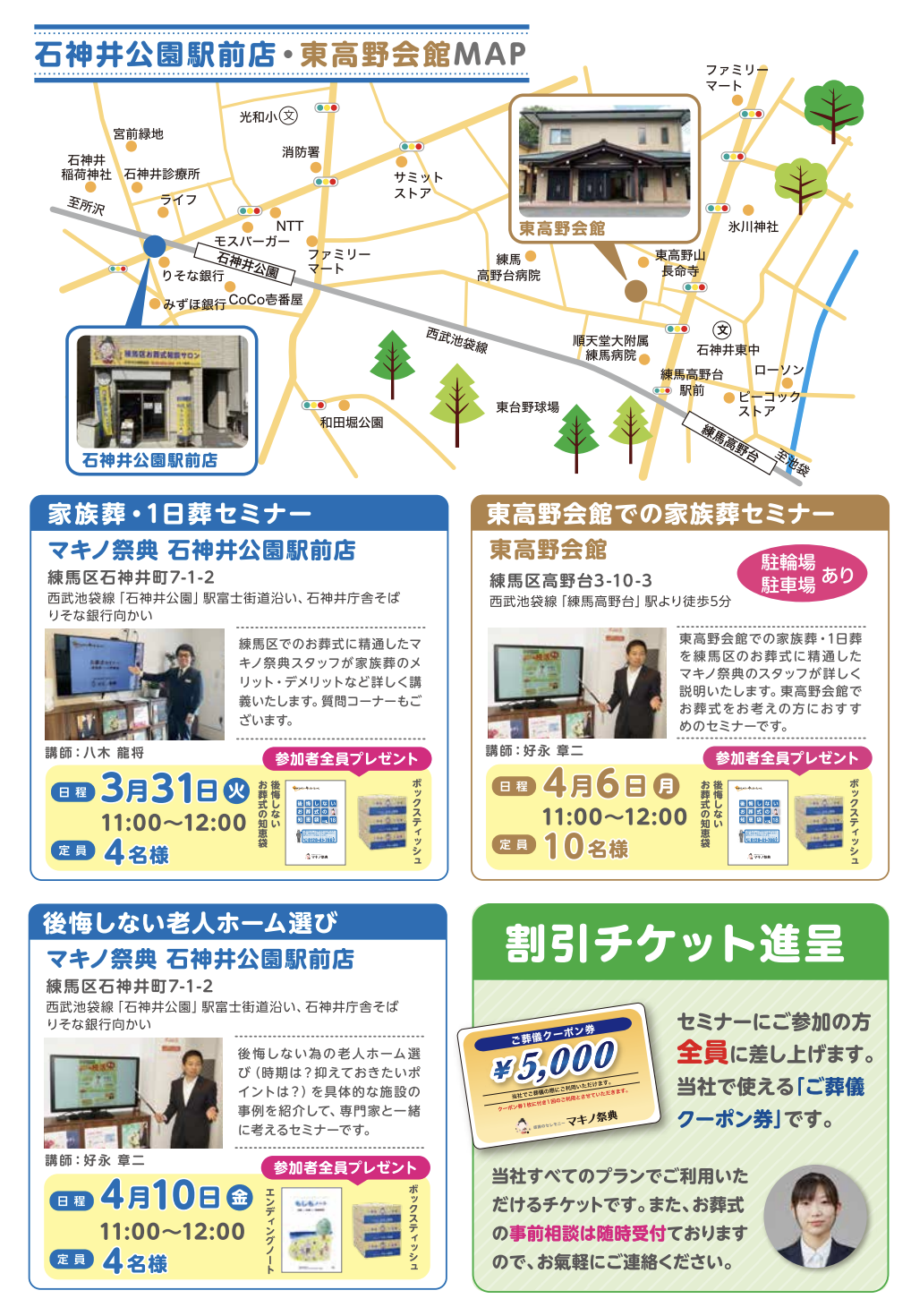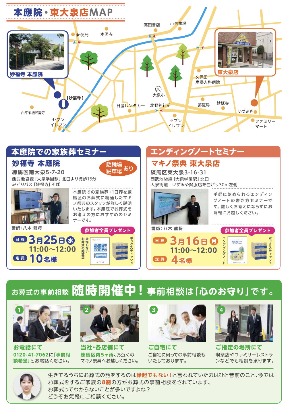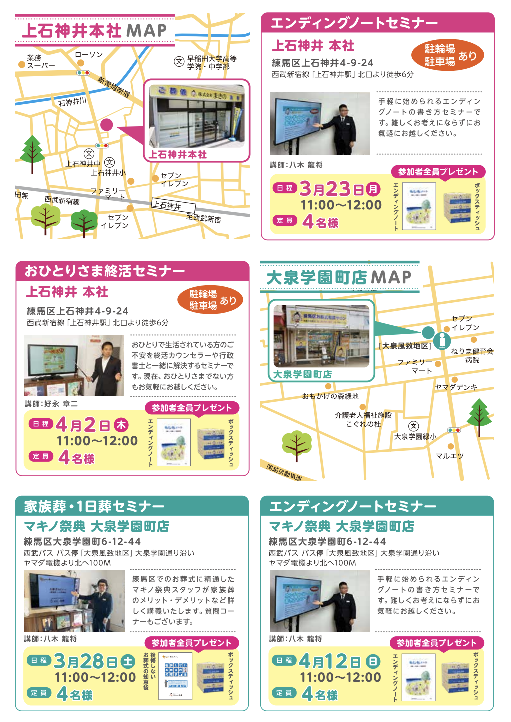 3月度 セミナー開催のお知らせ | 練馬区の家族葬・区民葬ならマキノ祭典(株式会社まきの)