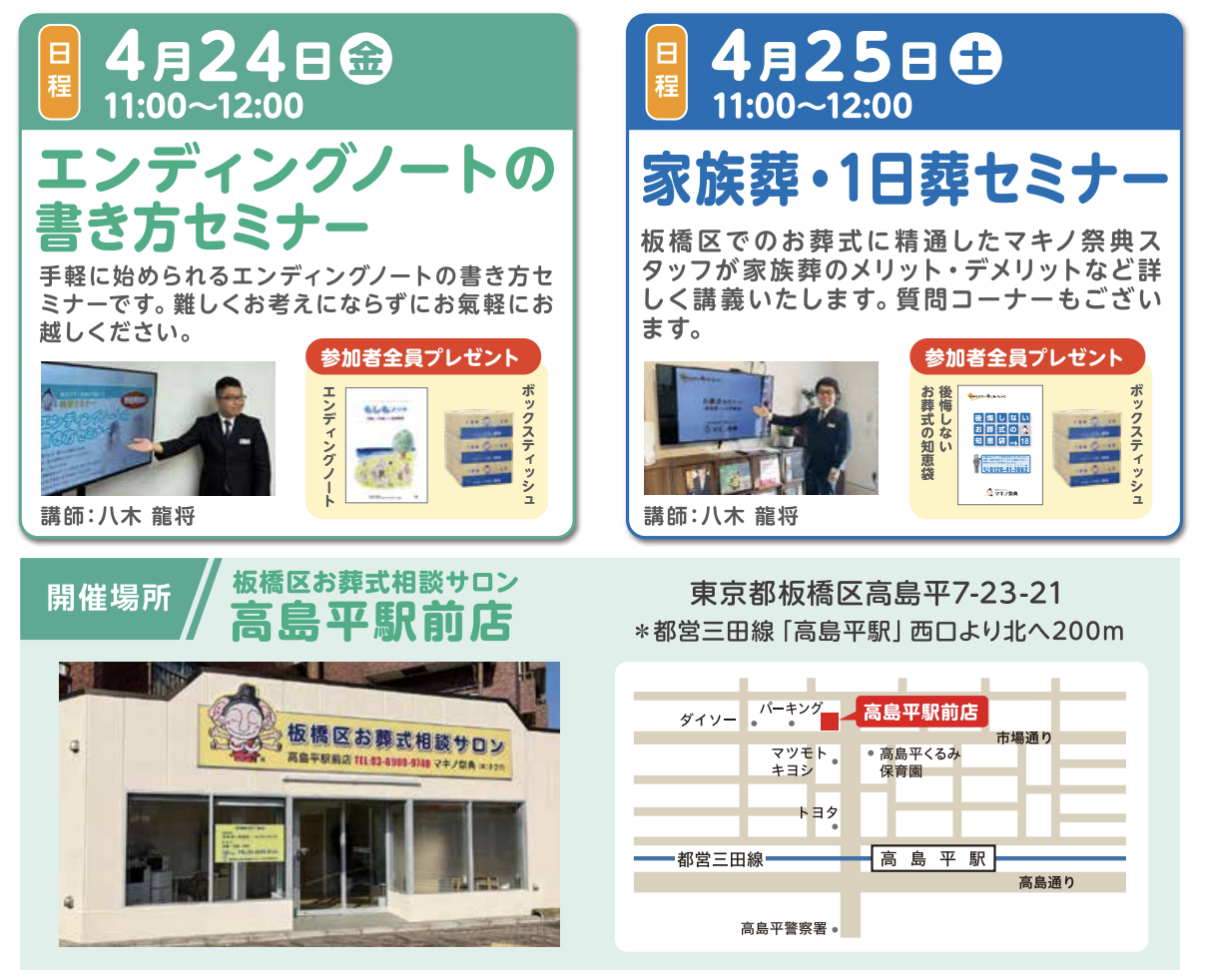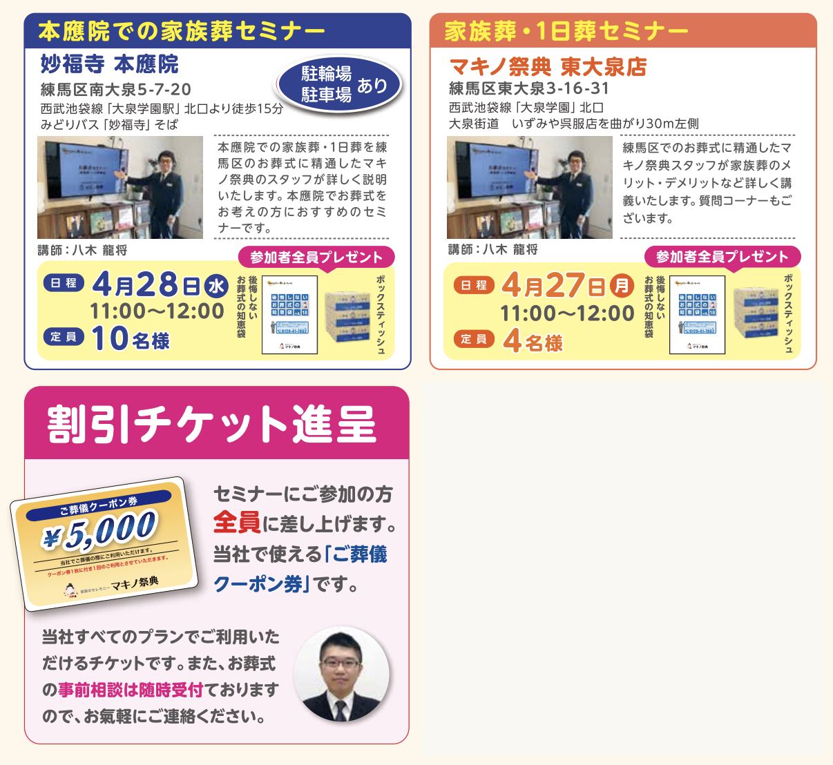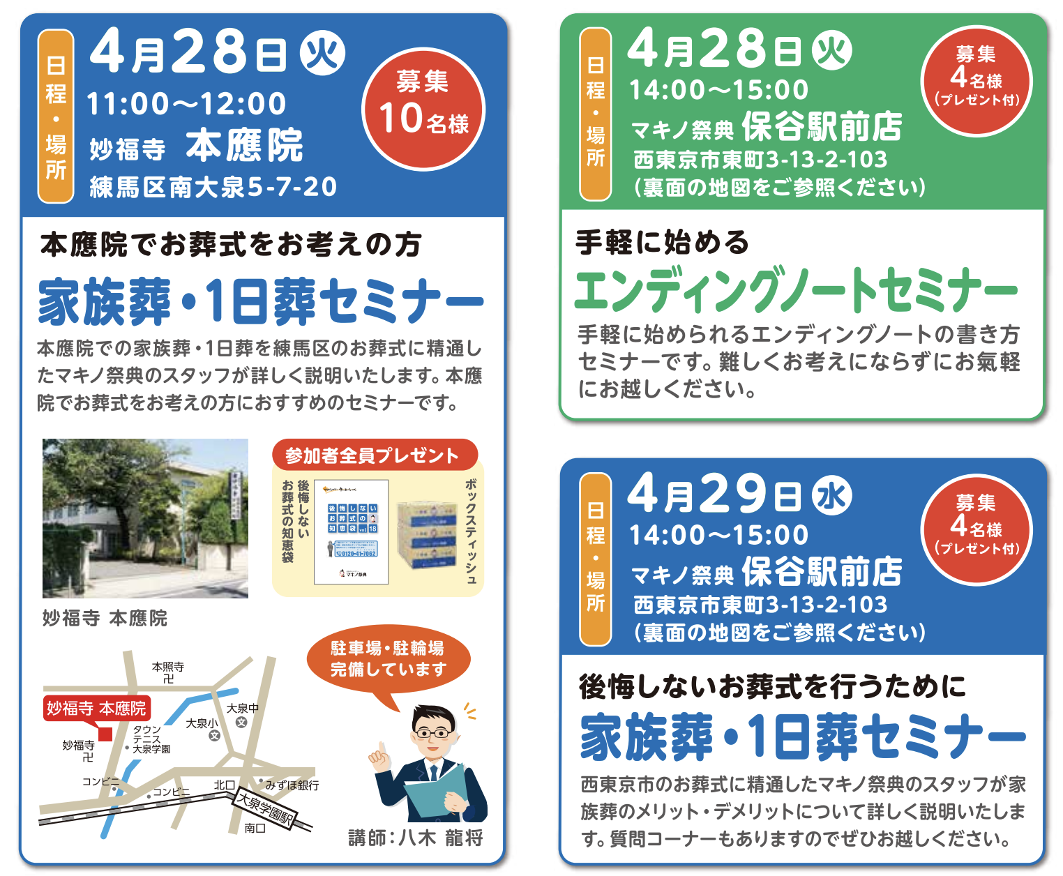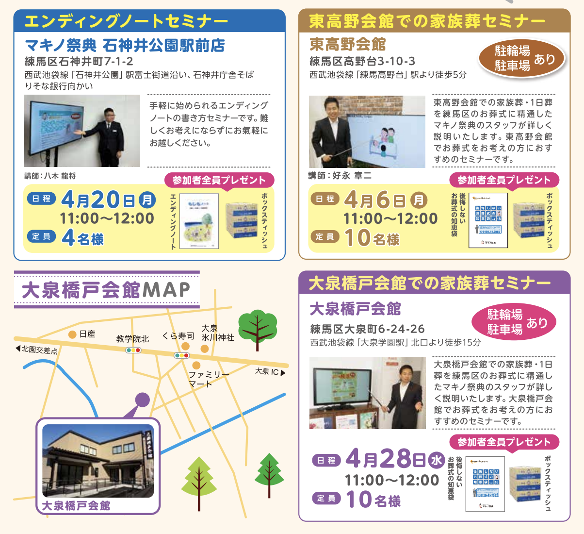 4月度 セミナー開催のお知らせ | 練馬区の家族葬・区民葬ならマキノ祭典(株式会社まきの)