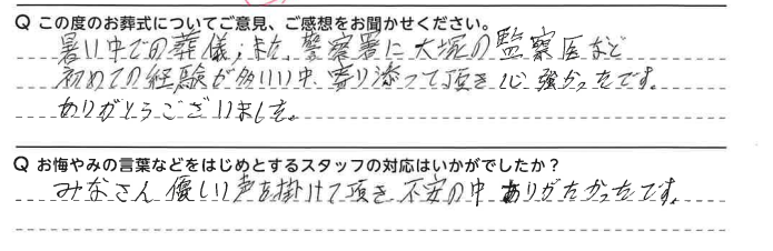 また、お褒めの言葉を頂戴し大変恐縮です。これからもお客様に寄り添うご葬儀を行えるよう、精進して参ります。